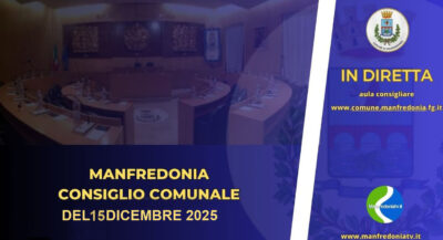 Si comunica, che il giorno 15 dicembre 2025 alle ore 15:00, presso la sala consiliare di Palazzo San Domenico, si terrà il Consiglio Comunal