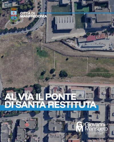 Una notizia straordinaria: al via il Ponte di Santa Restituta!La Giunta Comunale ieri ha approvato il Progetto di Fattibilità Tecnico-Economica (PFTE) per la realizzazione del progetto di rigenerazione urbana denominato “Lama Scaloria”, un intervento strategico per la città di Manfredonia.Finanziato dalla Regione Puglia nell’anno 2019 (rigenerazione urbana 2014/2020), il progetto era fermo a causa di problemi di natura tecnica e amministrativi, completamente superati in questi mesi di amministrazione.
